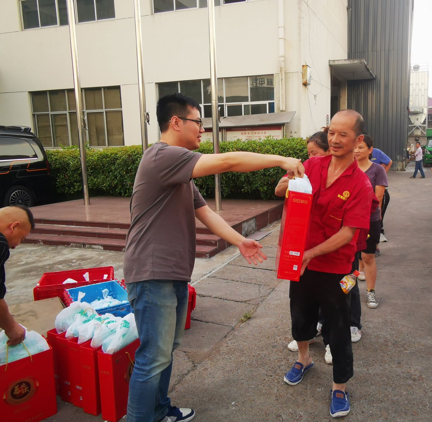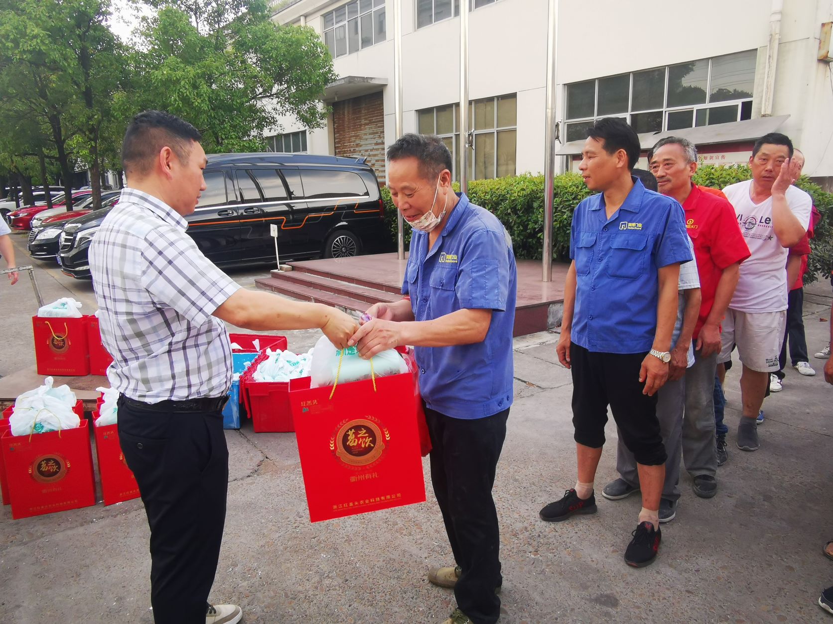7月15日,公司董事長徐發富,總經理祝曙豪等一行代表公司向車間員工表示親切的問候,并親手送上高溫防暑降溫用品禮包,并向他們傳達了公司對他們的深切關心,對他們在高溫天氣下的辛苦付出表示衷心感謝。
